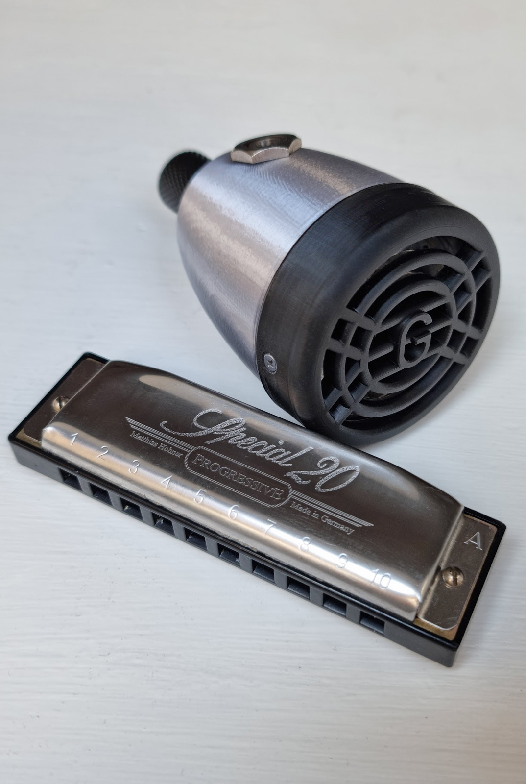 This was the perfect solution for harmonica players who could comfortably cup the microphone in their hand behind the harp with the cable passing between their fingers.