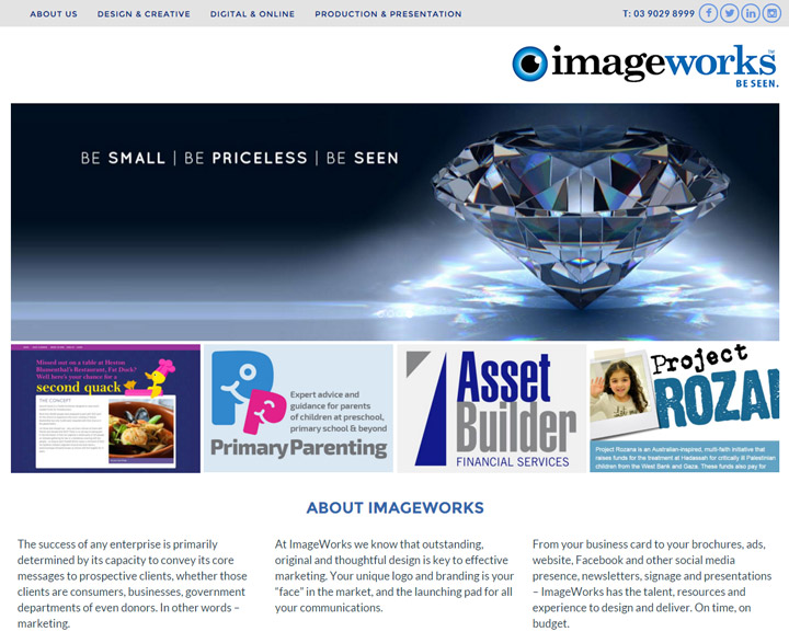 ImageWorks commissioned BRANDesign to create their logo and website. The brief was quite open and included conceptual development of promotional imagery and taglines.